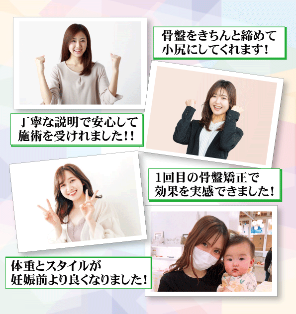 本当に1回で骨盤が小さくなった効果をすごい実感できました。産後のママ友や知人にも絶対おススメします!